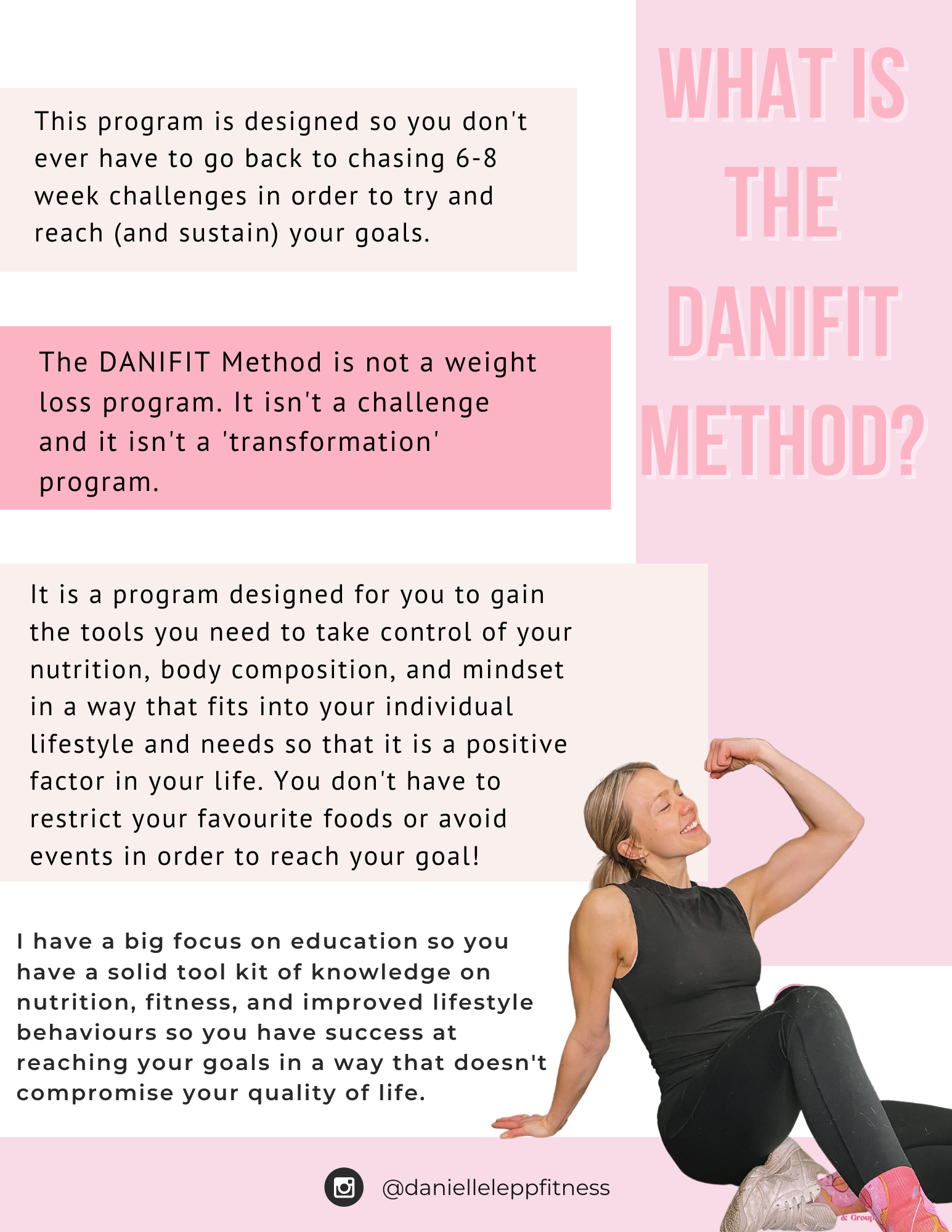 It all begins with a little effort and a whole lotta consistency. If you’re over the fitness industry BS marketing solely off the basis of how you look and how to “lose weight fast” with yet another fad diet, and want to shift the focus onto how you FEEL and create behaviour change that supports your health and longevity - The DANIFIT Method is for YOU. Whatever your goal, the way you go about changing your behaviours can make all the difference.